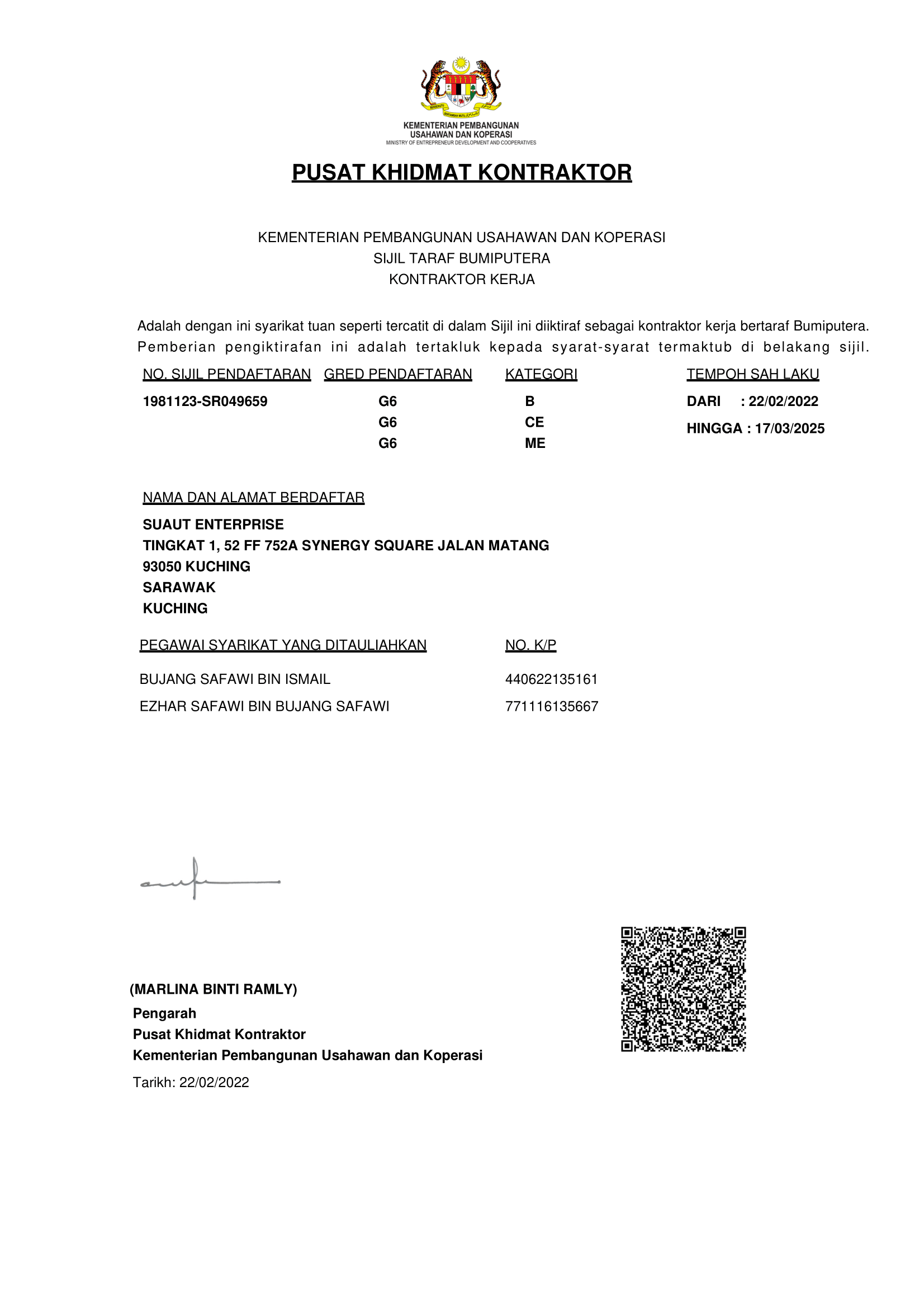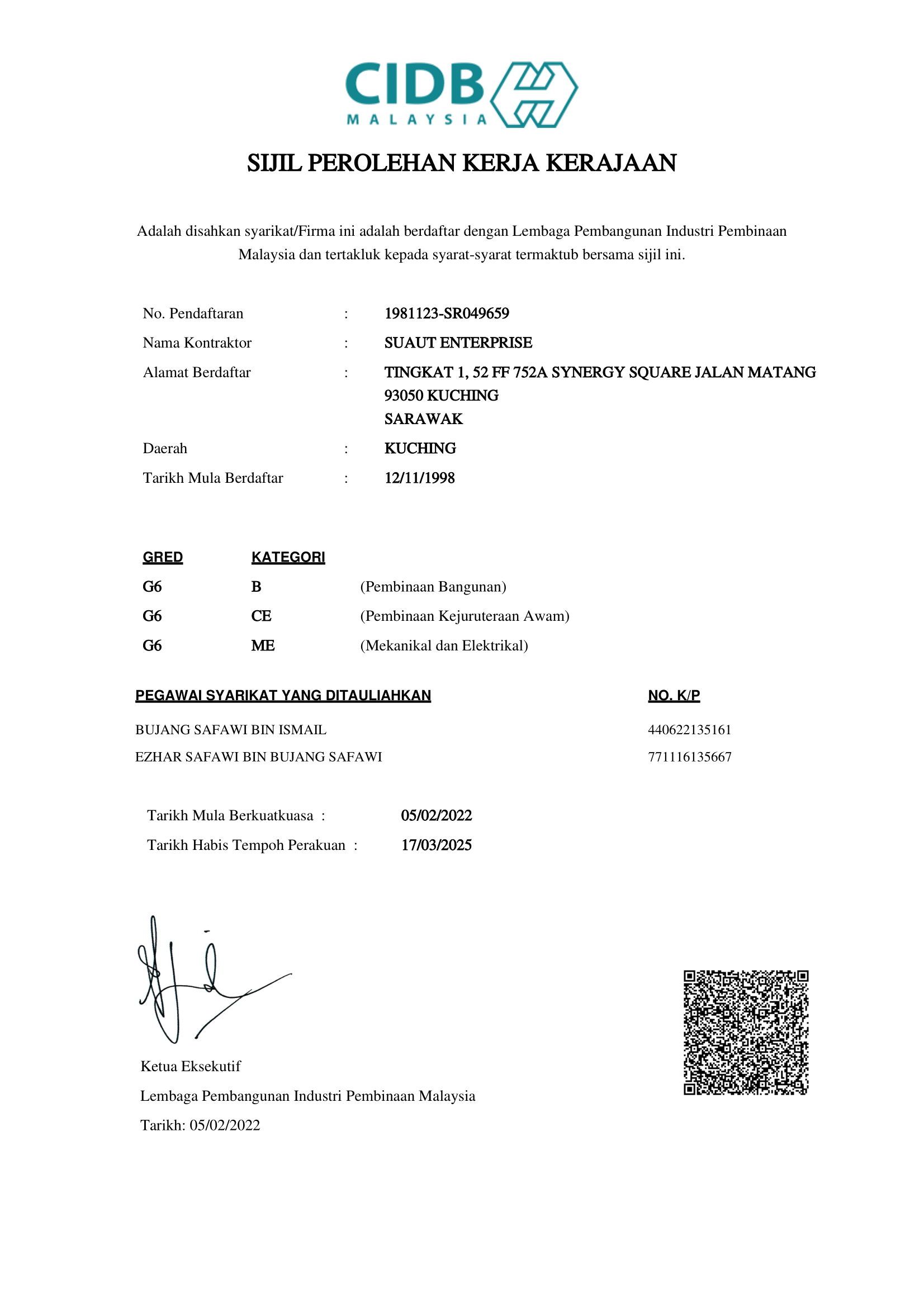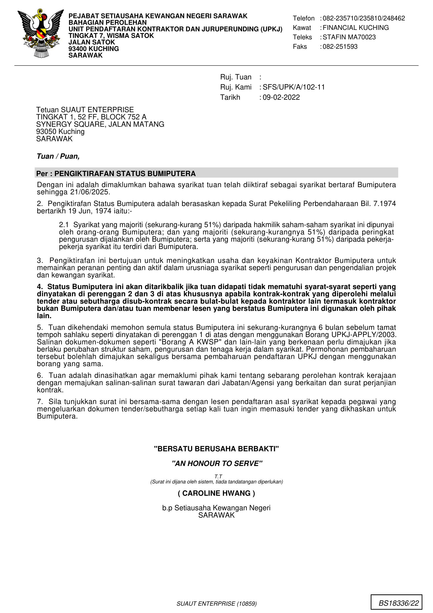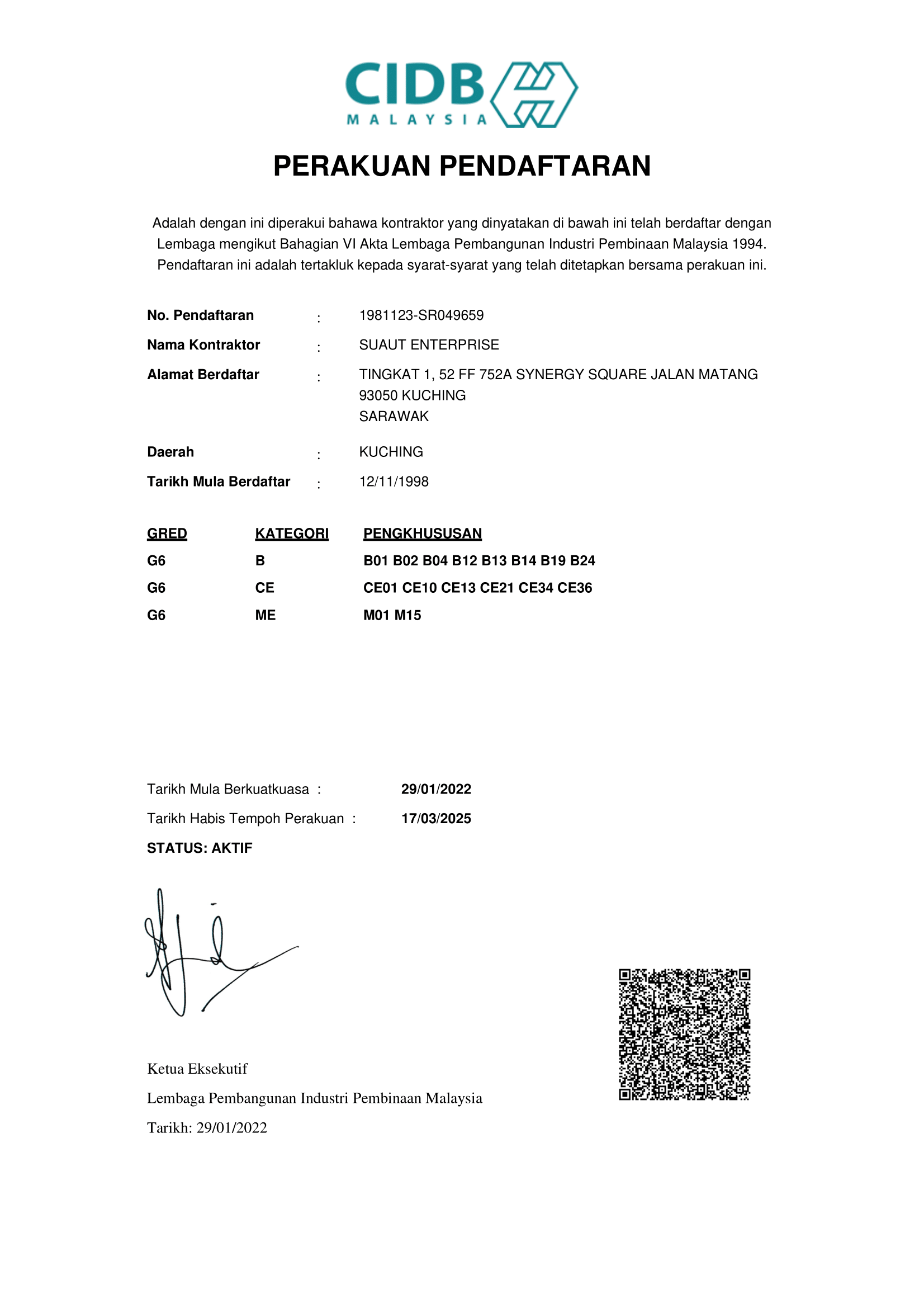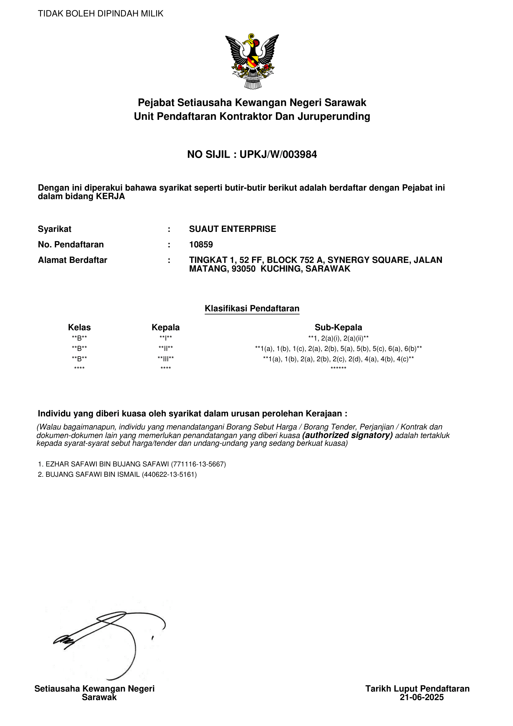 SUAUT Enterprise is a family run Partnership Company registered under Sarawak Business Name Ordinance in March 1980.